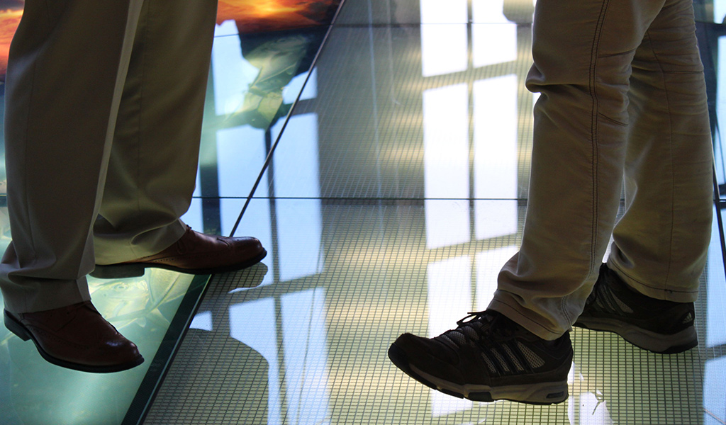 Tritt- und Laufflächen spielen eine tragende Rolle, wenn es um transparente Raum- und Architekturkonzepte geht. Es entsteht eine lichtdurchflutete Durchsicht, wenn Böden und Treppen vollständig oder partiell mit Glaselementen umgesetzt werden. Dabei ist die Anwendung sowohl im Wohn- und Arbeitsumfeld als auch im Straßenbild integrierbar. Die Kombination mit Farbdrucken, Motivfolien und Lichteffekten lässt individuelle Optiken entstehen.